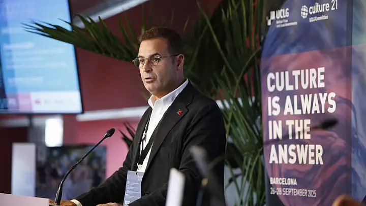 Yerel ve bölgesel yönetimlerin 21. yüzyılın başında, insanlığın ortak geleceğini derinden etkileyecek büyük sınavlarla karşı karşıya olduğunu belirten Akın, 'İklim krizi, silahlı çatışmalar, eşitsizlikler, toplumsal kutuplaşmalar, dijitalleşmenin getirdiği dönüşümler şehirlerimizi ve topluluklarımızı doğrudan etkilemektedir. Tüm bu tehdit ve belirsizlikler karşısında kültür, ümit verici bir çözüm olanağı olarak öne çıkmaktadır. Fakat küresel gündemler kapsamında kültürel haklar güvence altına alınmadığı sürece, kültür asla bir anahtar çözüm olamayacaktır. Kültürel haklar, sadece kültürel ögelere erişimden ibaret değildir. Bu haklar aynı zamanda kimliklerimizi özgürce yaşayabilme, farklı dillerde konuşabilme, inançlarımızı ifade edebilme ve kültürlerarası diyalog kurabilme haklarını da kapsamaktadır.' diye konuştu.