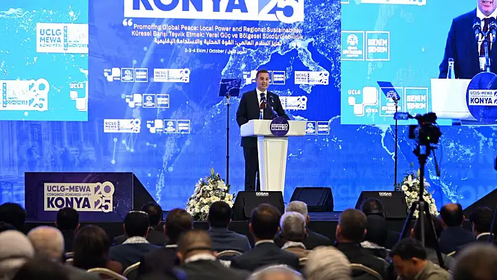 UCLG Dünya Teşkilatı Başkan Yardımcısı ve Balıkesir Büyükşehir Belediye Başkanı Ahmet Akın, Konya Büyükşehir Belediyesi ev sahipliğinde düzenlenen Birleşmiş Kentler ve Yerel Yönetimler Orta Doğu ve Batı Asya Bölge Teşkilatının (UCLG-MEWA) 2025 Kongresi'ne katıldı. UCLG-MEWA'nın 20 yılı aşkın süredir bölgede yerel yönetimlerin dayanışmasını güçlendiren, küresel gündemleri yerelleştiren ve yerelin sorunlarını küresel platformlara taşıyan güçlü bir teşkilat olduğunu söyleyen Balıkesir Büyükşehir Belediye Başkanı Ahmet Akın, düzenlenen kongrenin sadece bir idari toplantı değil; aynı zamanda şehirlerin geleceğine dair ortak aklın ve vicdanın buluşma noktası olduğunu söyledi.UCLG Dünya Teşkilatı Başkan Yardımcısı ve UCLG-MEWA Kültür ve Turizm Komitesi Başkanı olarak geçen hafta İspanya'nın Barselona kentinde düzenlenen 6. UCLG Kültür Zirvesine katıldığını hatırlatan Akın, 'Zirvede kültürün sürdürülebilir kalkınmadaki kritik rolünü, kültürel hakların korunmasının evrensel önemini bir kez daha vurguladık. Zirvede ayrıca UCLG Genel Sekreteri Emilia Saiz başta olmak üzere UCLG Dünya Teşkilatı'nın değerli yöneticileriyle bir araya gelerek kültür eksenli kalkınmanın geleceğine dair görüşlerimizi paylaştık. Orada kültürün kalkınma, barış ve kapsayıcılıkla ne kadar bağlantılı olduğunu gördük; bugün ele aldığımız konuların kültürel yönünü de güçlü bir şekilde hissettik.'diye konuştu.'YEREL YÖNETİMLER ÖNCÜ AKTÖR OLMALI'Güncel küresel sorunlara da değinen Akın, afetlerin giderek yıkıcı etkisini arttırdığını, tarım ve gıda güvenliğinin tehdit altında olduğu bir dönemden geçildiğini, ayrıca çatışmalar, göçler ve insani krizlerin bölgenin barış ve istikrarını derinden sarstığını söyledi. Akın, böyle bir ortamda yerel yönetimlerin yalnızca hizmet sunan kurumlar olmanın ötesine geçerek barışı, adaleti, dayanışmayı ve sürdürülebilir kalkınmayı savunan öncü aktörler haline gelmesi gerektiğini söyledi.FİLİSTİN HALKINA DESTEKKongrede insanlığın ortak vicdanını da dile getirmek istediğini belirten Akın, Filistin halkının meşru haklarını ve özgürlük mücadelesini yürekten desteklediğini söyledi. Akın, 'Masum sivillere yönelik saldırıları ve uluslararası hukuku hiçe sayan uygulamaları nedeniyle İsrail'i şiddetle kınıyoruz. Bölgedeki barış ve adaletin tesisi için her platformda sesimizi yükseltmeye devam edeceğiz. Bu bağlamda, yola çıktığı günden bu yana gündemimizde olan Küresel Sumud Filosu da hepimiz için bir umut ve dayanışma sembolüdür. Dünyanın farklı şehirlerinden, farklı halklarından gelen bu ortak vicdani girişim, Filistin halkının yalnız olmadığını tüm dünyaya bir kez daha göstermiştir. Yerel yönetimler olarak bizler de bu insanlık mücadelesinin yanında durmaya devam edeceğiz. Buradan tüm Filistin halkını destekliyor, Sumud Filomuza da selamlarımı gönderiyorum. Biz biliyoruz ki barışın ve adaletin olmadığı yerde kalkınmadan, sağlıklı şehirlerden, güvenli gıda sistemlerinden, dirençli toplumlar oluşturmaktan bahsetmek mümkün değildir. Bu nedenle UCLG-MEWA'nın yürüttüğü çalışmalar sadece yerel yönetimlerin gelişimine değil, aynı zamanda barışa ve insanlığın ortak geleceğine hizmet etmektedir.'şeklinde konuştu.'İNSANLIĞIN ORTAK VİCDANI İÇİN SORUMLULUK TAŞIYORUZ'Kongre görüşmelerinin bölge barışı, güvenliği ve dayanışmayı güçlendirecek önemli sonuçlar doğuracağına inandığını söyleyen Akın, 'Kongrede alacağımız kararlar, sadece kentlerimizin değil; aynı zamanda gelecek nesillerin yaşam kalitesini de doğrudan etkileyecektir. Bu kongre, bizlere bir kez daha göstermektedir ki dayanışma, iş birliği ve ortak vizyon olmadan hiçbir şehrin geleceği güvence altında değildir. Bu nedenle, hep birlikte daha dirençli, adil, barışçıl ve sürdürülebilir şehirler inşa etme yolunda adımlar atmak zorundayız. Filistin'de yaşanan acılar bizlere barışın ve adaletin tesis edilmesinin ne kadar hayati olduğunu hatırlatmaktadır. Yerel yönetimler olarak bizler, sadece şehirlerimizin geleceği için değil; aynı zamanda insanlığın ortak vicdanı için de sorumluluk taşıyoruz. Bu anlayışla burada ortaya koyacağımız dayanışma ve iş birliğinin bölgemize, insanlığa ve barışa katkı sağlayacağına yürekten inanıyorum.'ifadelerini kullandı.