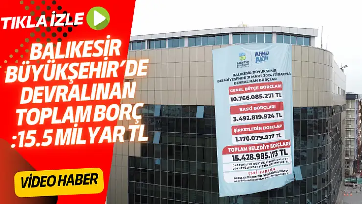- BALIKESİR BÜYÜKŞEHİR'DE DEVRALINAN TOPLAM BORÇ: 15.5 MİLYAR TL