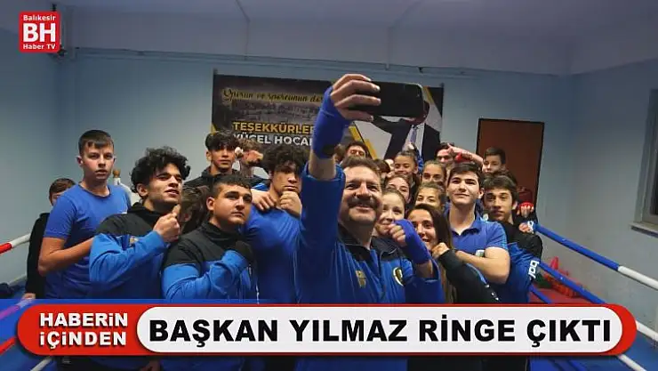 Balıkesir Büyükşehir Belediyespor'un genç boksörleriyle bir araya gelen Büyükşehir Belediye Başkanı Yücel Yılmaz istekleri kırmadı ve eşofmanlarını giyip ringe çıktı.