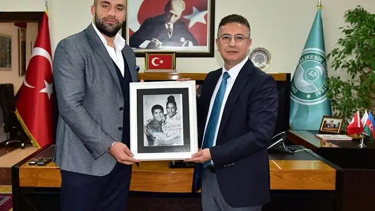 Milli Boksör ve Balıkesir Üniversitesi Öğr. Gör. Ali Eren Demirezen, Rektör Prof. Dr. İlter Kuş'u makamında ziyaret etti.