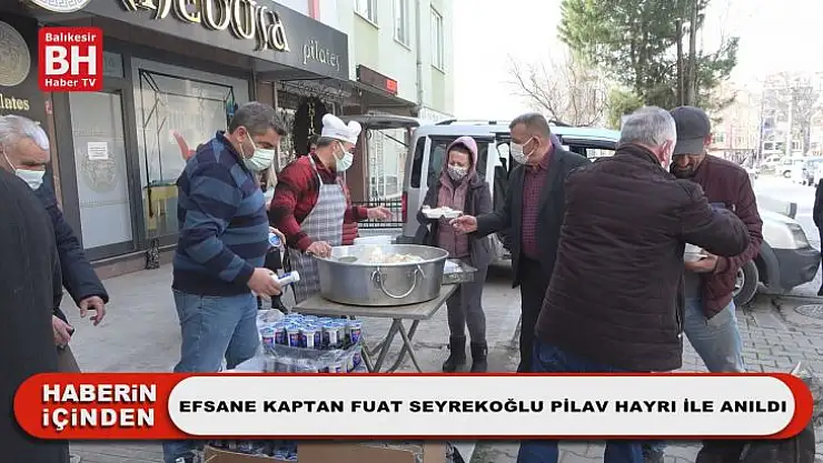 Balıkesirspor'un efsane kaptanı Fuat Seyrekoğlu için, vefatının 12. Yılında evinin önünde eşi Müzeher Seyrekoğlu pilav hayrı verdi.