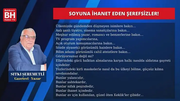 Sıtkı Şeremetli - Köşe Yazısı - Soyuna İhanet Eden Şerefsizler!
