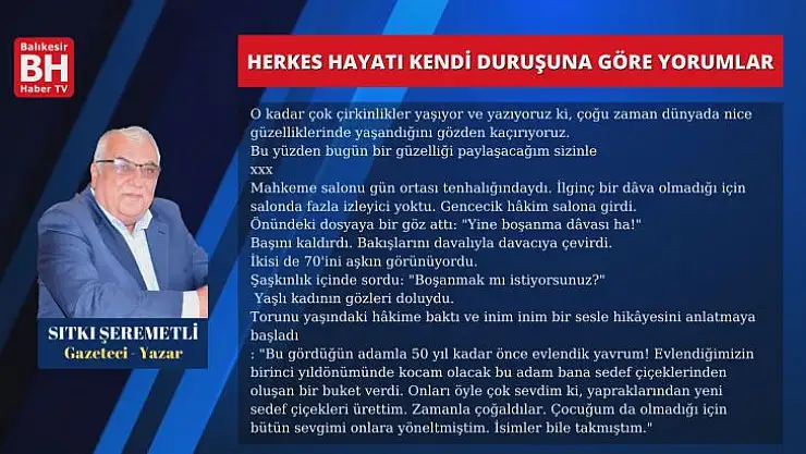 HERKES HAYATI KENDİ DURUŞUNA GÖRE YORUMLAR