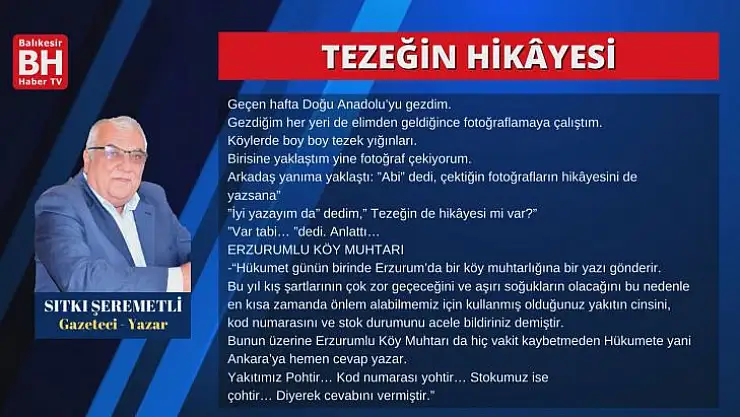 ”İyi yazayım da” dedim,” Tezeğin de hikâyesi mi var?”