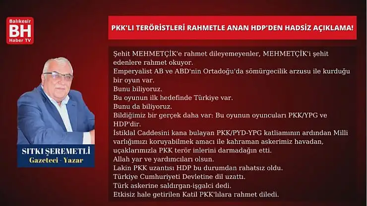 PKK'LI TERÖRİSTLERİ RAHMETLE ANAN HDP'DEN HADSİZ AÇIKLAMA!