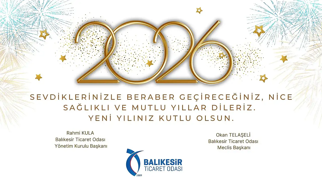 Sevdiklerinizle beraber geçireceğiniz nice sağlıklı ve mutlu yıllar dileriz. Yeni yılınız kutlu olsun. Rahmi Kula Balıkesir Ticaret Odası Yönetim Kurulu Başkanı Okan Telaşeli Balıkesir Ticaret Odası Meclis Başkanı